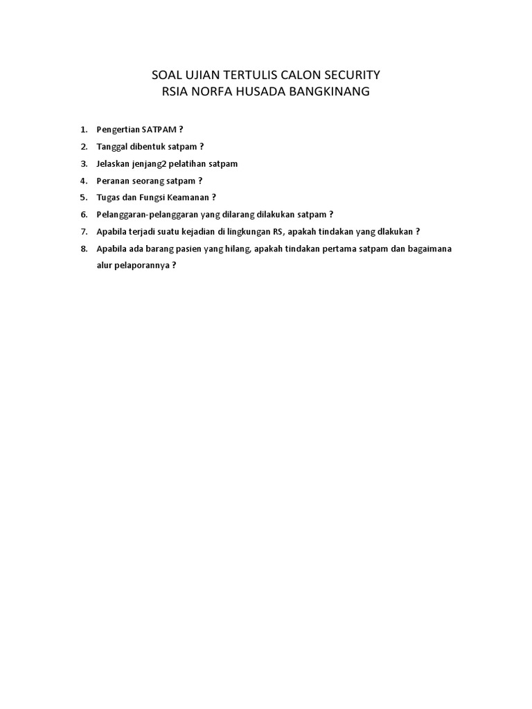 Sistem Manajemen Pengamanan Organisasi Perusahaan Dan Atau from www.yumpu.com We did not find results for: Check spelling or type a new query. Maybe you would like to learn more about one of these? Daftar pertanyaan wawancara untuk satpam.